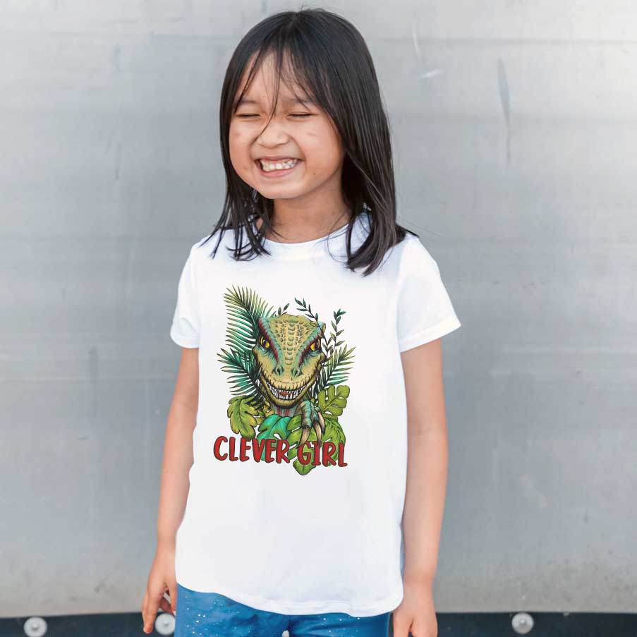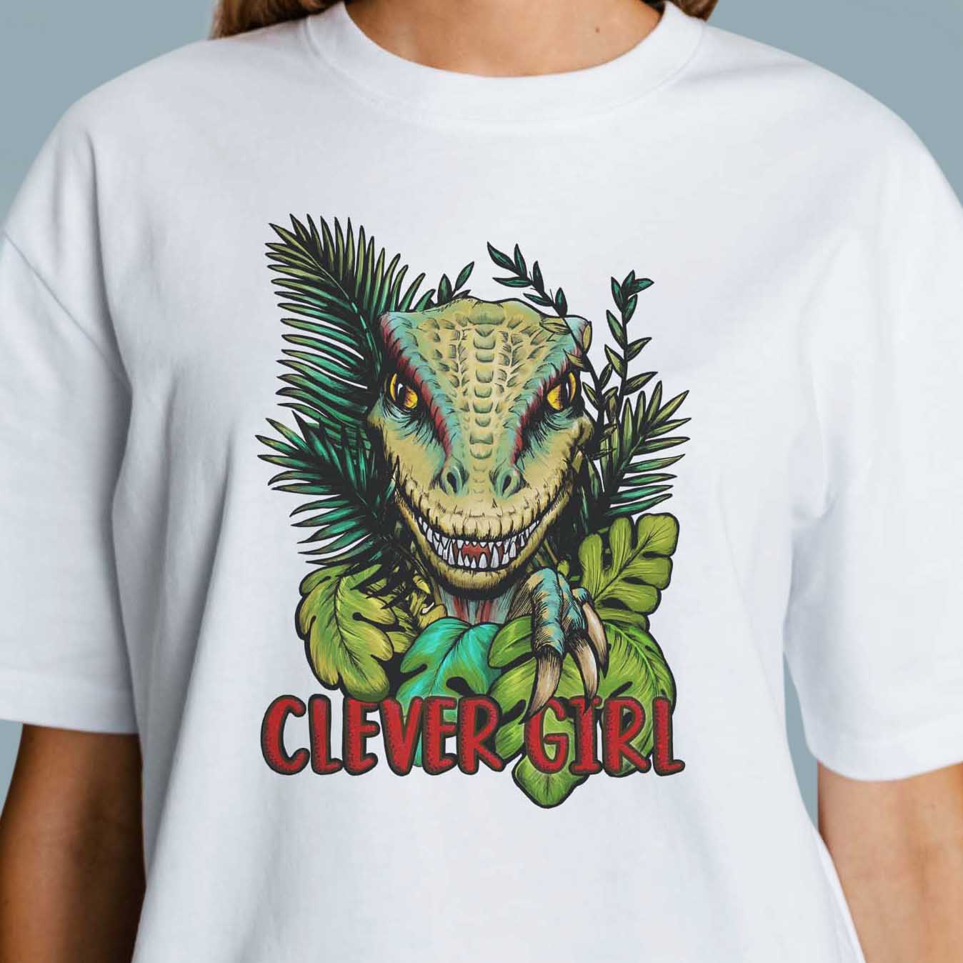 The illustrated design features the iconic velociraptor with the nostalgic quote 'Clever Girl'. Each comfy and breathable unisex T-shirt is made from 100% cotton and looks super cool at any occasion. This design has been drawn by hand and carefully printed using quality inks that are durable and machine washable, we spared no expense...