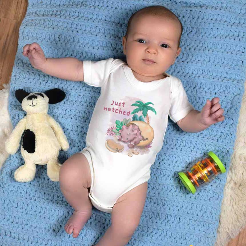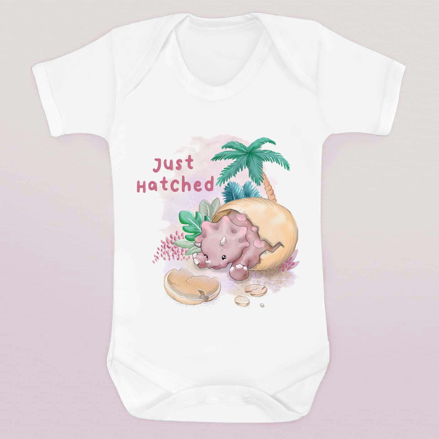Dinosaur 'Just Hatched' 0-3 Months Baby Grow (Pink)