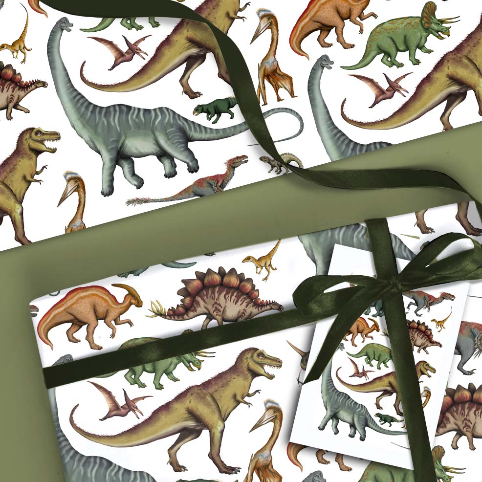 Make sure your presents look as good on the outside as they do on the inside! The design features hand drawn illustrations of the most iconic and fascinating dinosaur species from the Cretaceous and Jurassic Period.