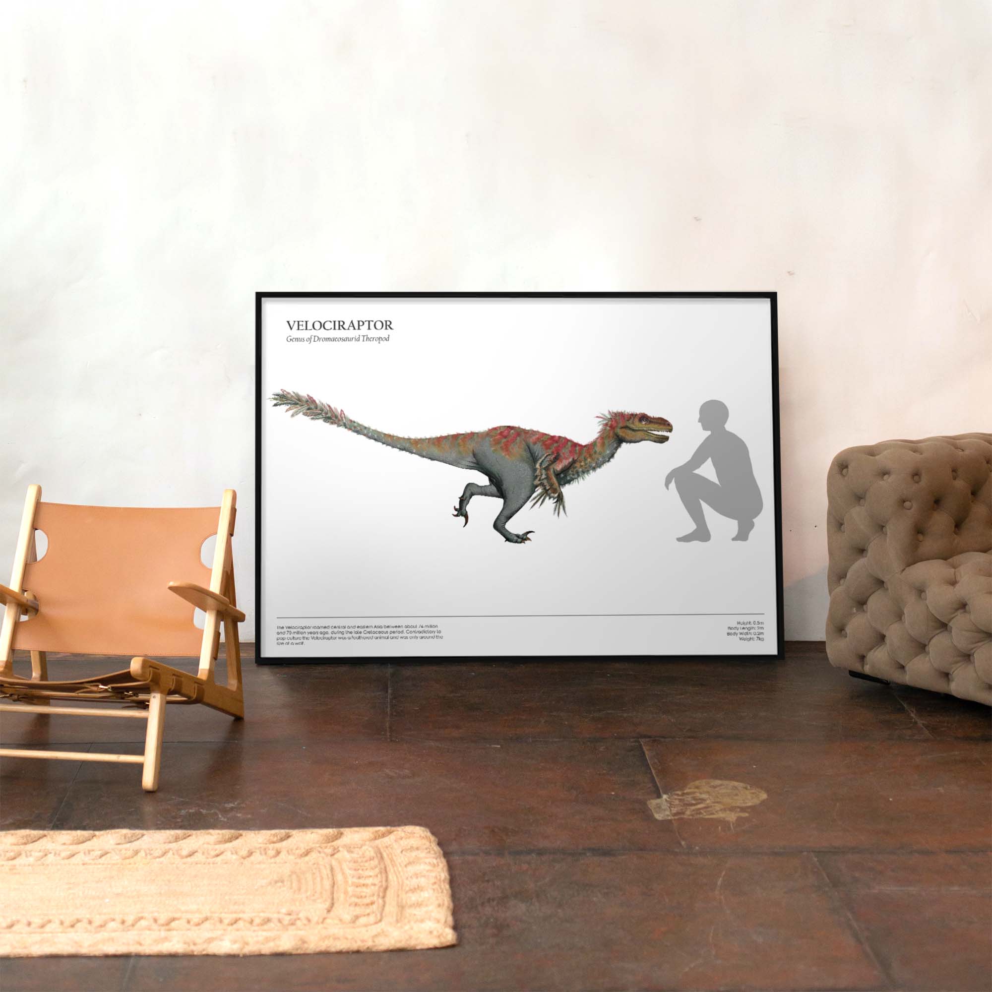 Human & Dinosaur Size Comparison Posters (Velociraptor, A4)
